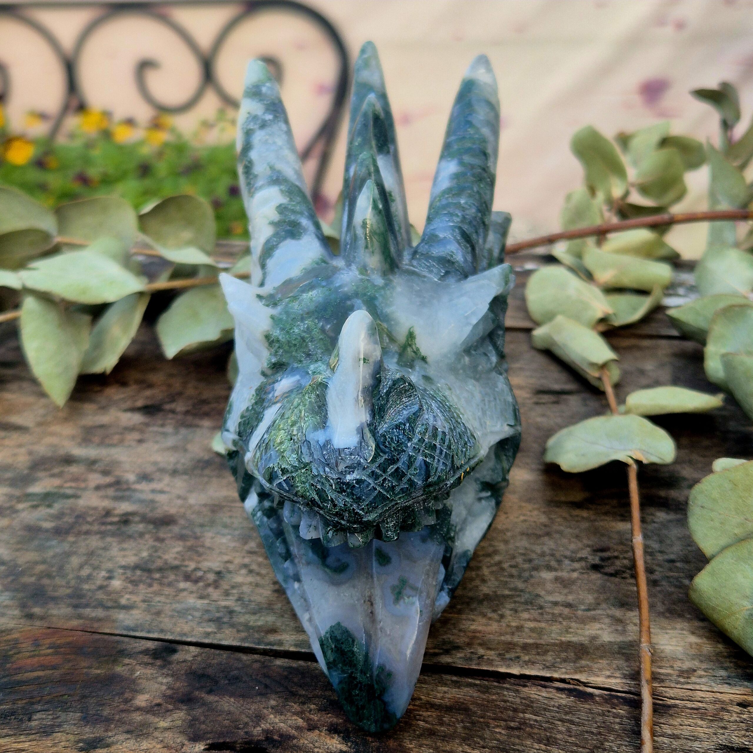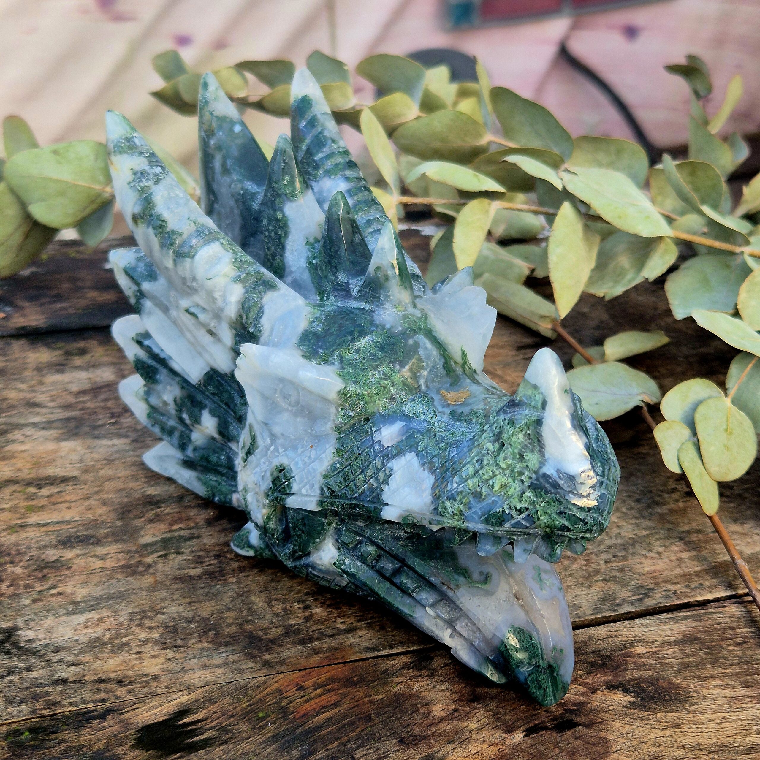 Mytische mosagaat draken skull