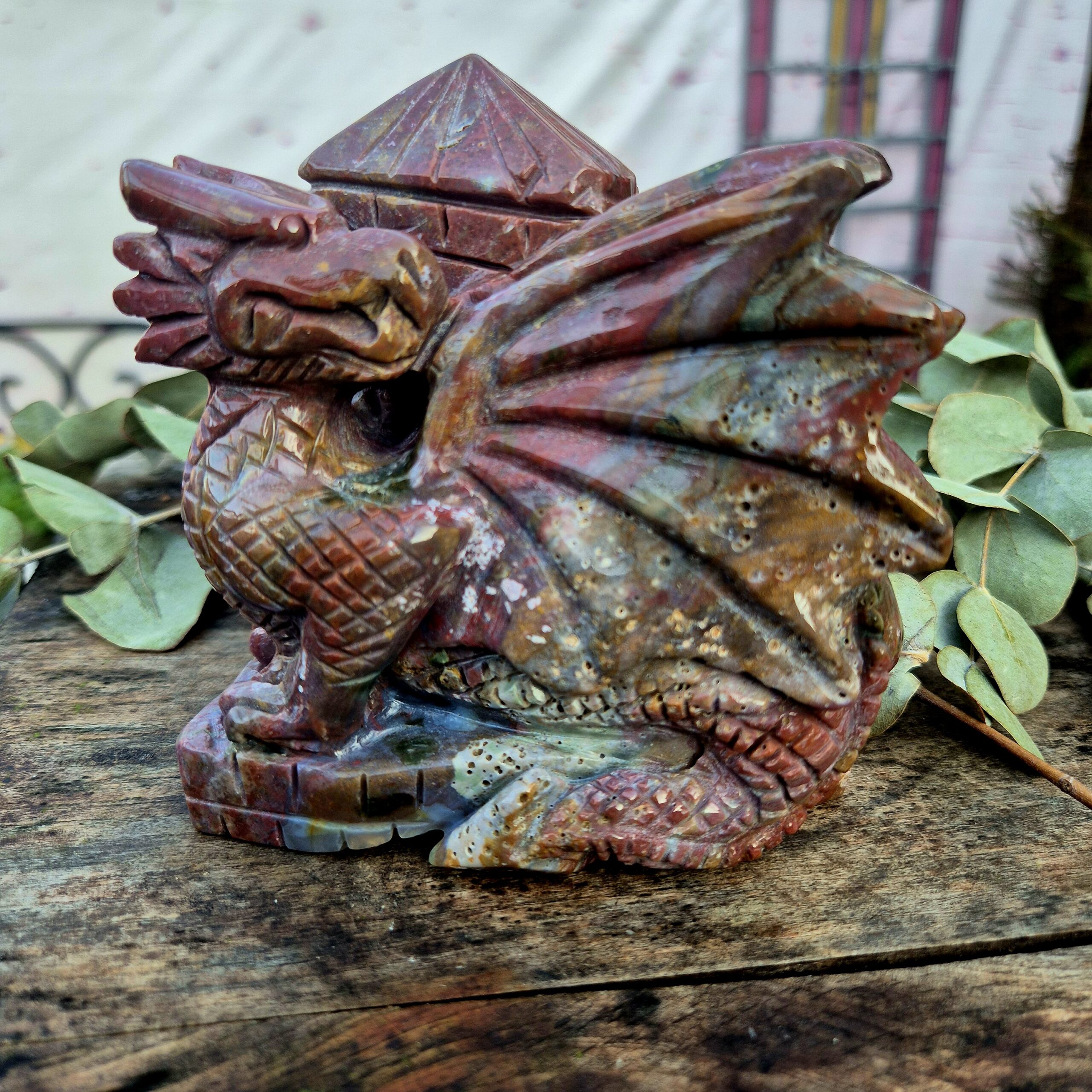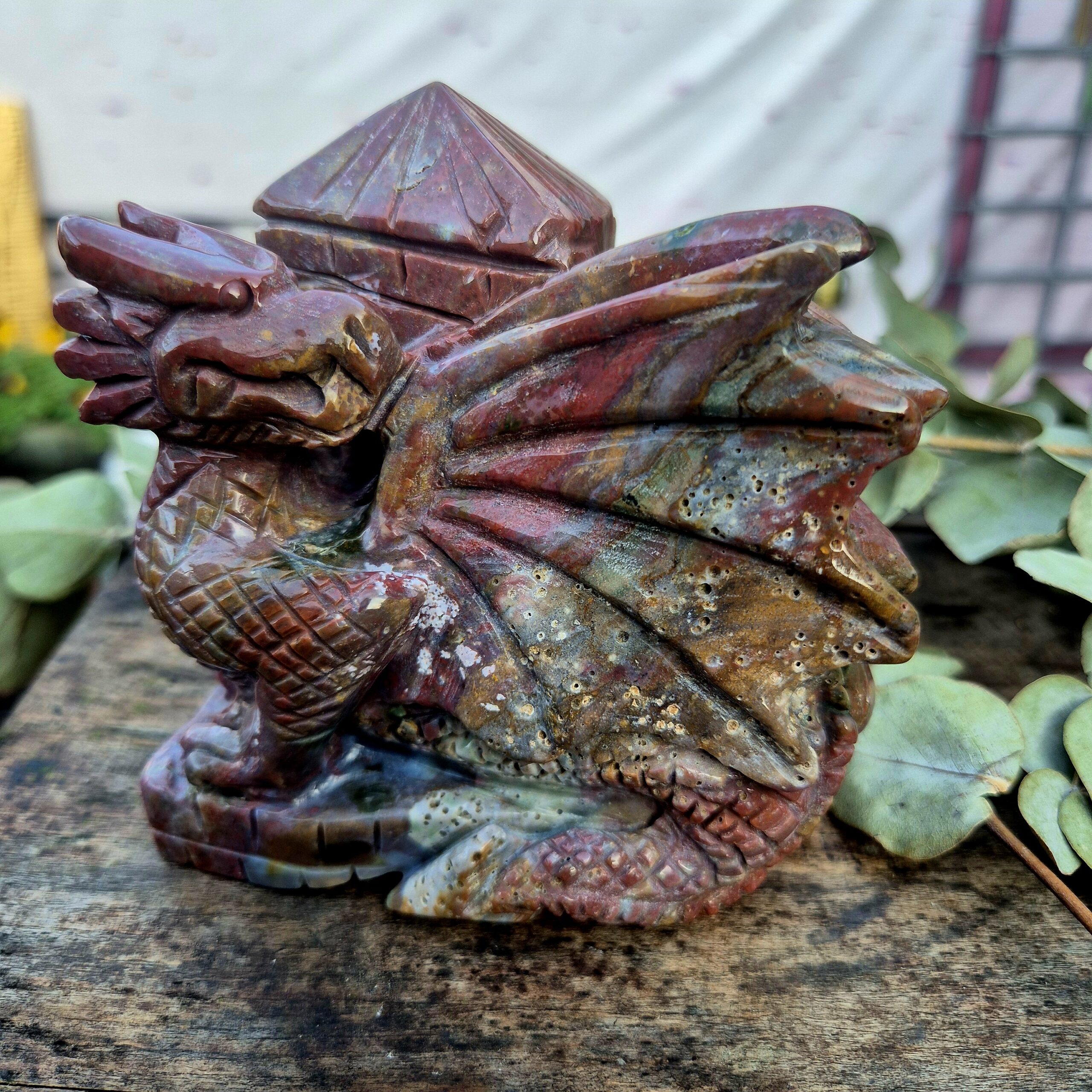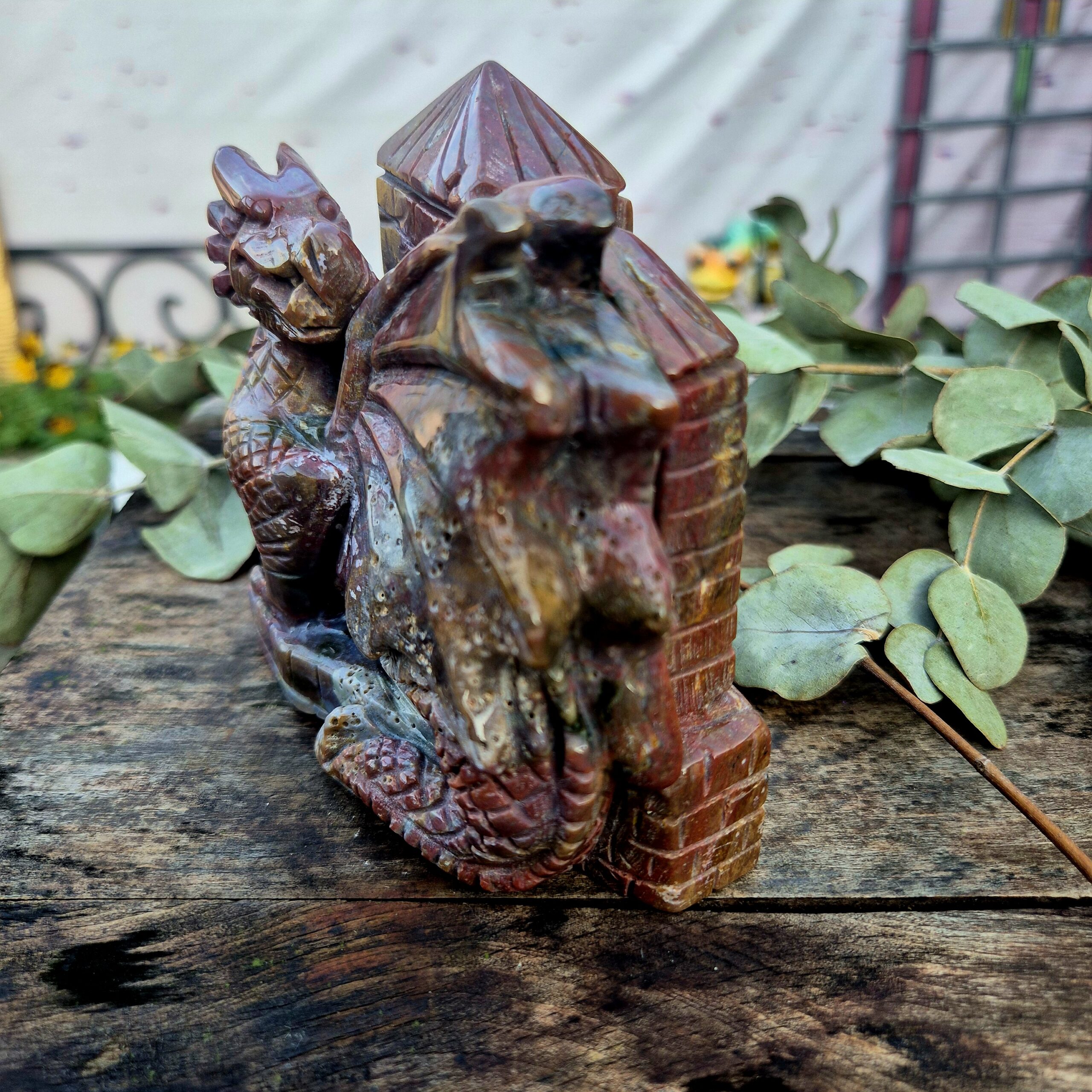 Oceaan Jaspis vliegende draak met kasteelmuur
