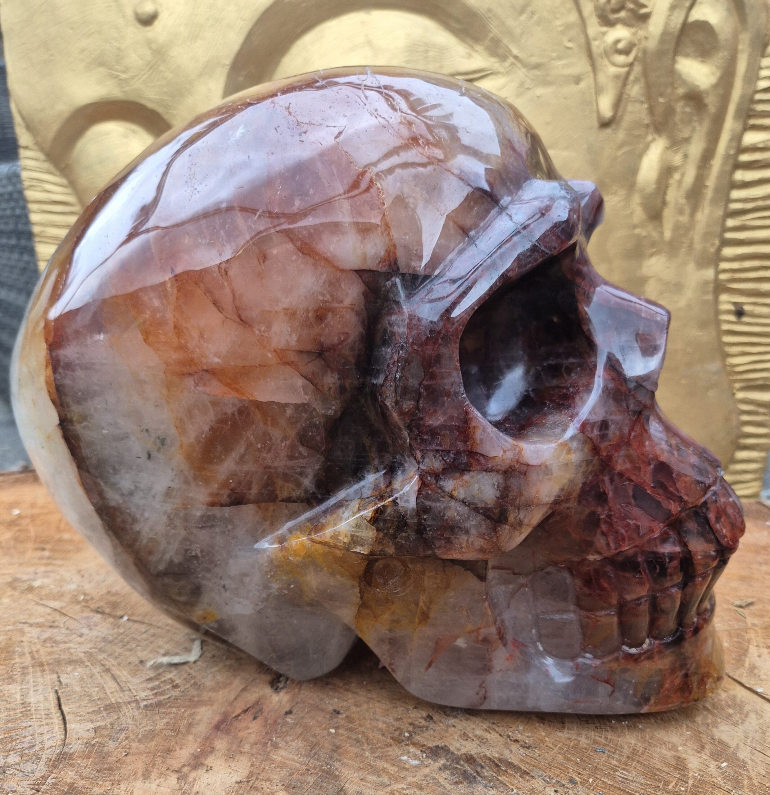 Red met golden healer schedel