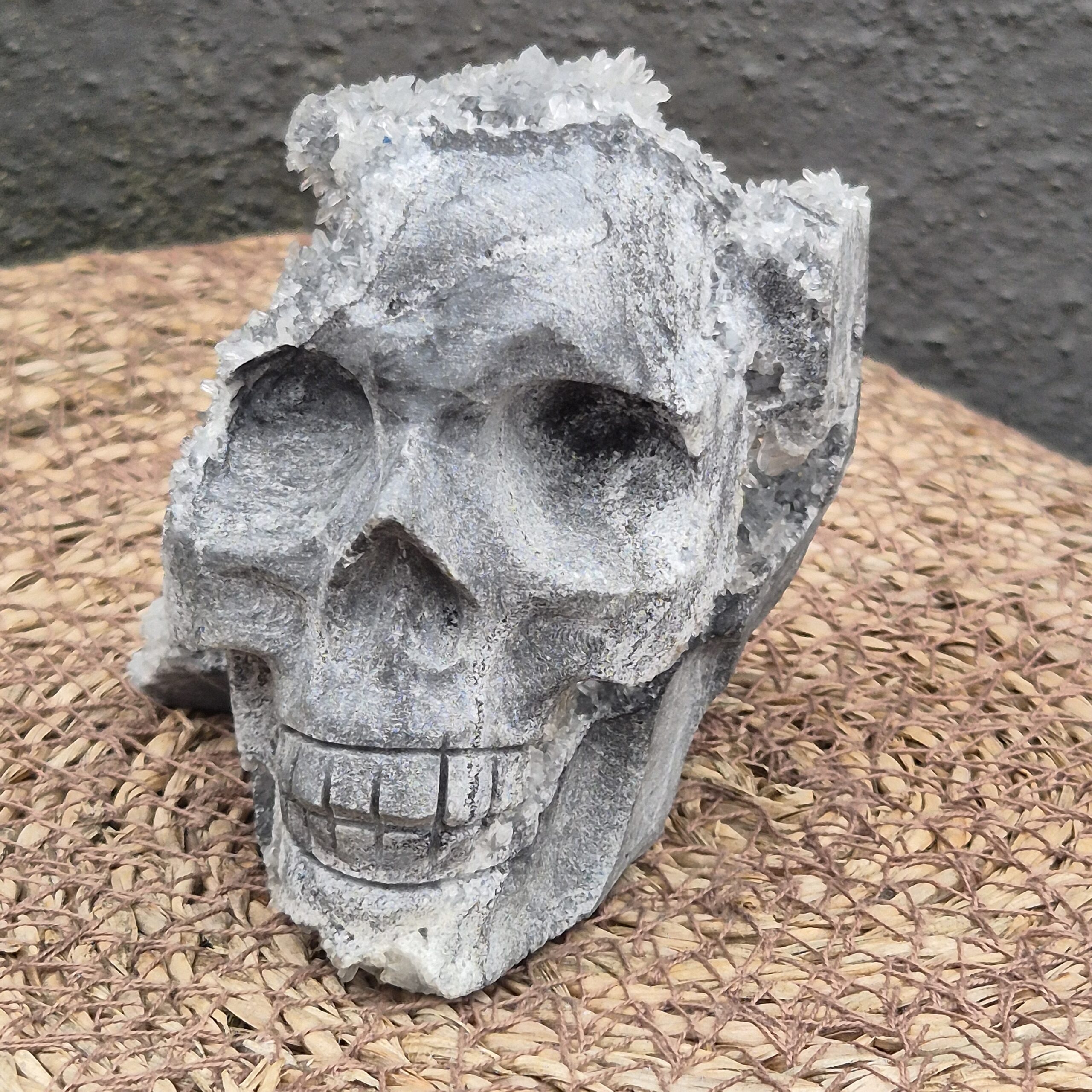 Deze mooie schedel met prachtige kristallen grotten neem je mee naar de binnenwereld van Moeder Aarde maar ook naar jou pure Bron
