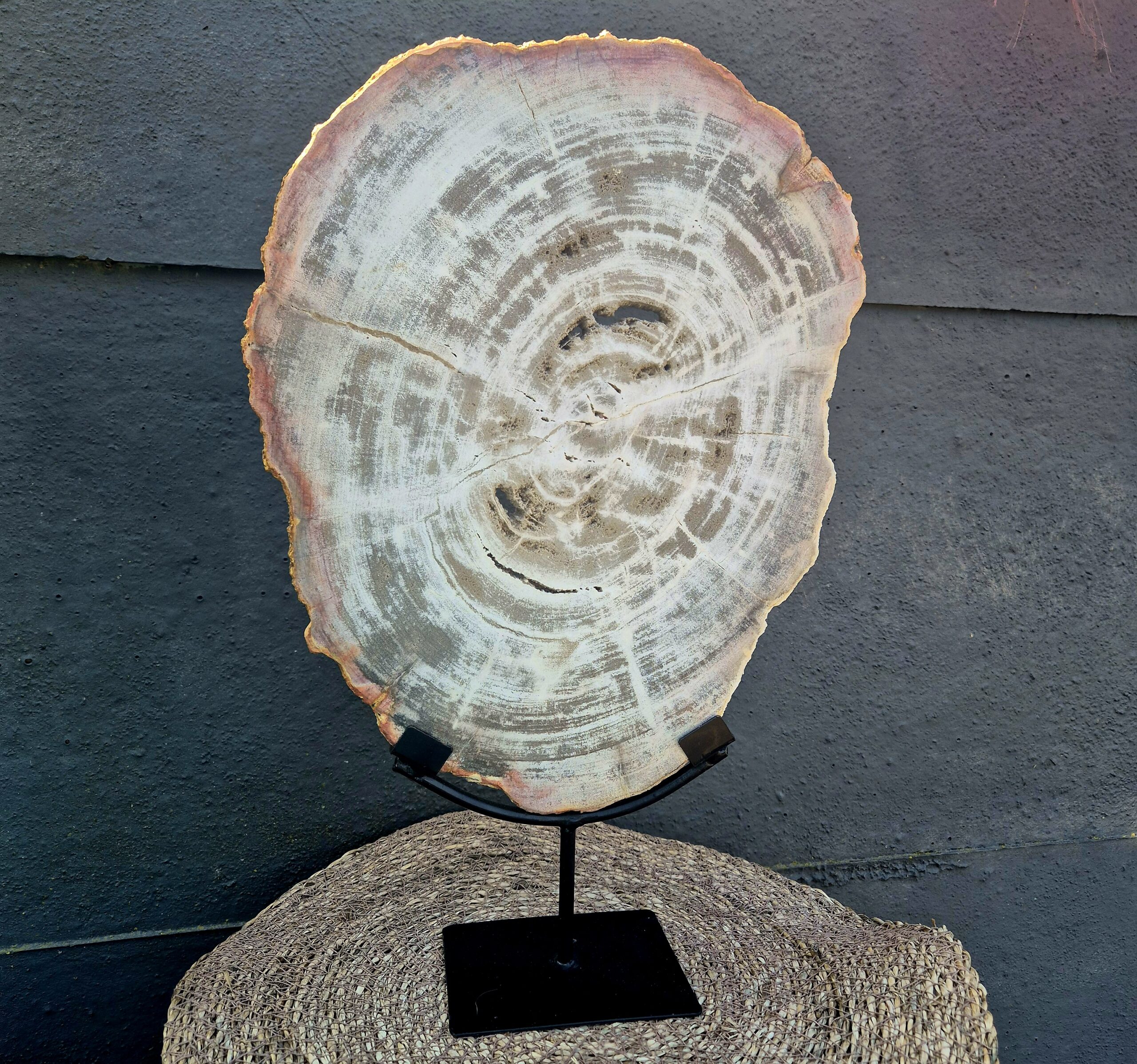 Prachtige schijf versteendhout op standaard